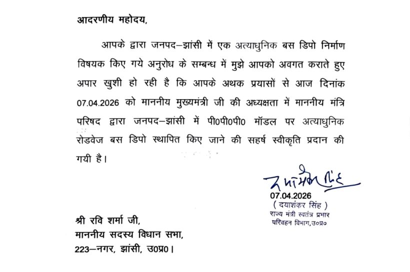 झाँसी। नगर विधायक रवि शर्मा के अनुरोध पर उत्तर प्रदेश सरकार ने झाँसी में पीपीपी मॉडल पर एक अत्याधुनिक रोडवेज बस डिपो स्थापित करने की स्वीकृति प्रदान कर दी है। यह जानकारी परिवहन विभाग के राज्यमंत्री (स्वतंत्र प्रभार) श्री दयाशंकर सिंह जी द्वारा दी गई। माननीय मंत्री ने बताया कि माननीय मुख्यमंत्री की अध्यक्षता में…
