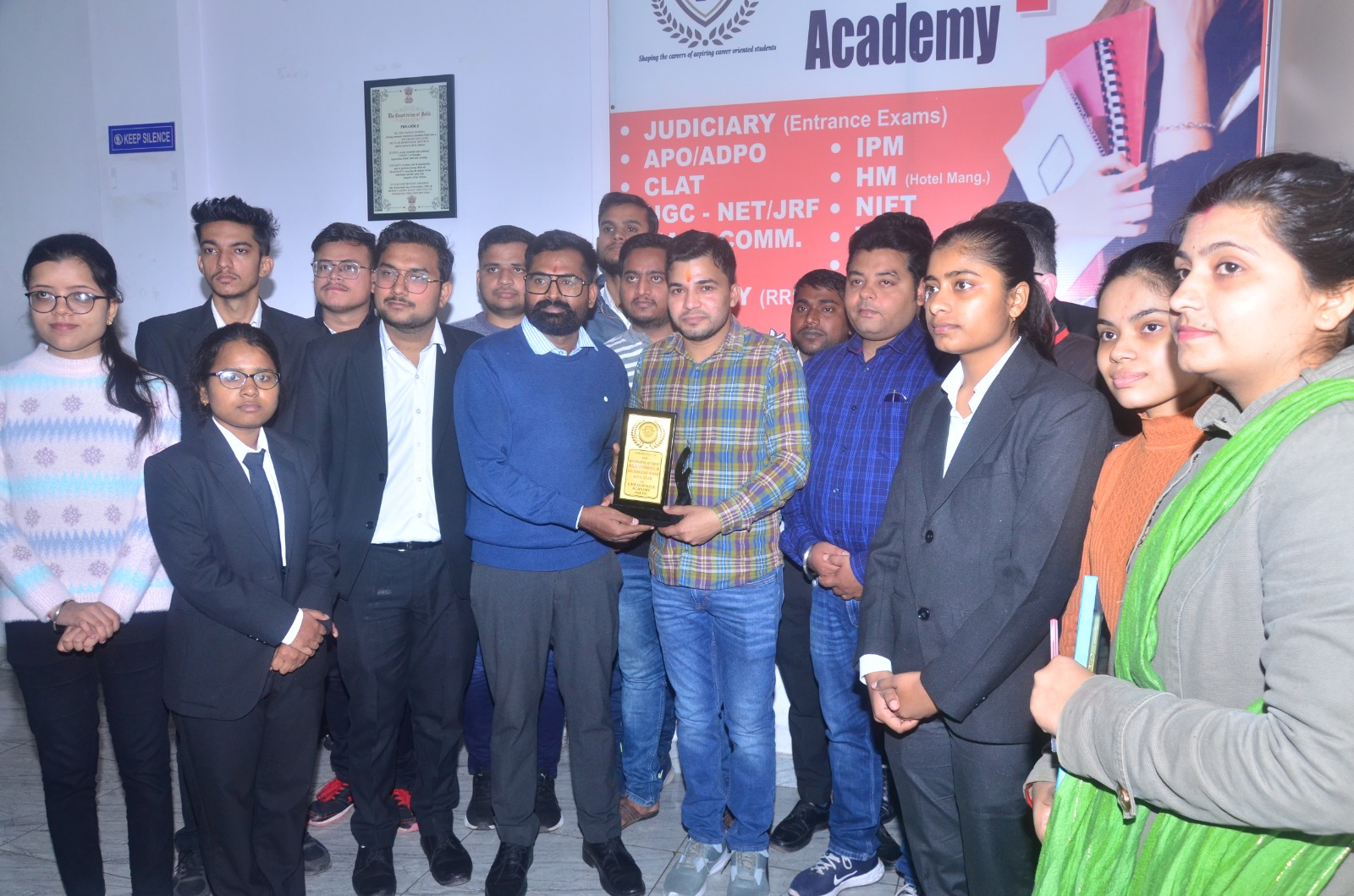 आज दिनांक 09/12/2023 को लाॅ गाइडेंस ऐकेडमी झाँसी के छात्र आनंद शुक्ला द्वारा बिहार लोक सेवा आयोग द्वारा संचालित की जाने वाली सहायक अभियोजन अधिकारी की प्रतियोगी परीक्षा को सफलतापूर्वक 86वीं रैंक से उत्तरीण करने के उपलक्ष्य पर LGA संस्थान द्वारा अपने कार्यालय 807/1 secend flor राय कॉलोनी, जेल चौराहा झांसी में कोचिंग में अध्ययनरत अन्य छात्र-छात्राओं को प्रेरणा प्रदान करने के लिए एवं आनंद शुक्ला जी का स्वागत करने के लिए एक स्वागत समारोह कार्यक्रम आयोजित किया गया जिसमें आनंद शुक्ला द्वारा अपनी सफलता की यात्रा के अनुभवों को छात्र-छात्राओं के साथ साझा किया गया और कार्यक्रम का संचालन संस्थान के शिक्षक श्री नीरज शिवहरे जी द्वारा किया गया अन्य शिक्षकों और छात्र-छात्राओं का आभार संस्थान के अतिथि शिक्षक प्रशांत शर्मा द्वारा किया गया और श्री आनंद शुक्ला को उनकी उपलब्धि के लिए बधाई सहित आगामी जीवन की मंगल कामना की गई आनंद शुक्ला ने अपने माता-पिता एवं भाई बहन , नीरज शिवहरे (LGA) का धन्यवाद किया एवं डॉ T. R सर, शरद सर, बाबू जगजीवन राम विधि संस्थान एवं बाबा साहब भीमराव अंबेडकर विश्वविद्यालय की शिक्षक गणों एवं मित्रगणो का धन्यवाद किया