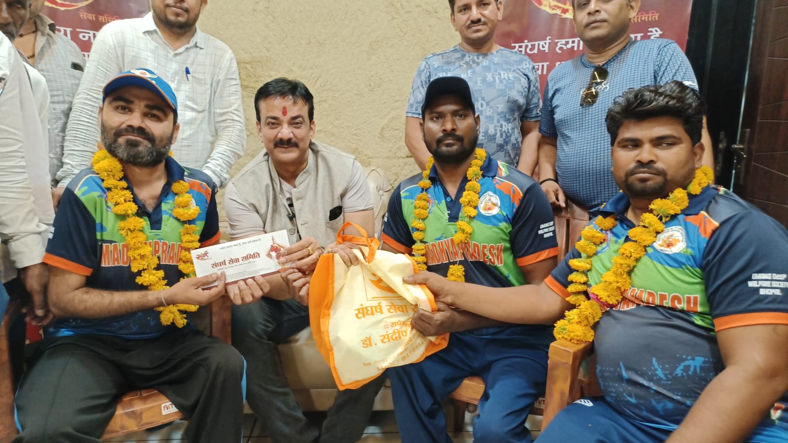 झाँसी। कभी किसी पर बनता मैं बोझ नहीं, हूँ तन से दिव्यांग पर मन से नहीं। पद्मा साहू द्वारा रचित कविता की इन्हीं पंक्तियों को चरितार्थ करते हुये जनपद के 3 दिव्यांग व्हीलचेयर क्रिकेट में राष्ट्रीय स्तर पर लगातार उपलब्धियां हासिल करते हुए झाँसी का नाम राष्ट्रीय पटल पर सुशोभित कर रहे हैं। लेकिन क्रिकेट के अन्य मैचों की तरह व्हीलचेयर क्रिकेट की देश में इतनी लोकप्रियता नहीं है जिसके चलते इनके हुनर को दरकिनार कर दिया जाता है सादा जीवन जीते हुए यह दिव्यांगजन कई समस्याओं से जूझ रहे हैं जिनके पास खुद के खेल उपकरण और व्हीलचेयर तक उपलब्ध नहीं है। कई जनप्रतिनिधियों और समाजसेवियों के दरवाजे खटखटाने के बाद व्हीलचेयर क्रिकेट टीम के मैनेजर अरविंद जोशी, ईश्वरी प्रसाद और रामविशाल बड़ी उम्मीदों के साथ संघर्ष सेवा समिति कार्यालय पहुंचे जहाँ उन्होंने समाजसेवी डॉ० संदीप के समक्ष अपनी व्यथा रखी। टीम मैनेजर अरविंद की पत्नी भी दिव्यांग हैं और प्रादेशिक स्तर की बैडमिंटन खिलाड़ी है जोशी दंपत्ति की एक बिटिया है जिसका विद्यालय में प्रवेश कराना था लेकिन बिटिया की शिक्षा के लिए धन अभाव आड़े आ रहा था डॉ० संदीप द्वारा सहायता कर इस समस्या का तत्काल निस्तारण कराया गया साथ ही आगामी क्रिकेट लीग के लिए आवागमन और जलपान की व्यवस्था भी की गयी। अरविंद जोशी ने बताया 10 जून से दिल्ली के सेक्टर 12 में 10 दिवसीय इंडियन व्हीलचेयर क्रिकेट प्रीमियर लीग का आयोजन किया जा रहा है इस प्रतियोगिता में देश भर की 8 टीमें सम्मिलित होंगी। झाँसी के ये खिलाड़ी प्रतियोगिता में एम०पी० अवेंजर्स के लिए अपने खेल का प्रदर्शन करेंगे। तीनों खिलाड़ियों का संघर्ष सेवा समिति कार्यालय में माल्यार्पण कर सम्मान किया गया जिसके पश्चात भावुक होकर टीम मैनेजर अरविंद जोशी ने कहा कि हमने देश विदेश कई जगह क्रिकेट टूर्नामेंट खेले हैं जिसमें कई बार सम्मानित भी किया गया है लेकिन आज संघर्ष सेवा समिति में जो सम्मान मिला वह सम्मान हमें पूर्व में कभी प्राप्त नहीं हुआ हम डॉ० संदीप सरावगी और संघर्ष सेवा समिति के सभी सदस्यों का हृदय से आभार व्यक्त करते हैं। वहीं डॉ० संदीप सरावगी ने कहा कोई भी व्यक्ति तन से तो दिव्यांग हो सकता है पर मन से वह अंय की तरह सशक्त होता है। यदि हम अपनी काबिलियत का सही प्रदर्शन करते हैं तो हम किसी भी क्षेत्र में अपना वर्चस्व स्थापित कर सकते हैं। एक आम आदमी शरीर से सशक्त होने के पश्चात भी वह नहीं कर पाता जो आज हमारे दिव्यांग भाईयों ने करके दिखाया है इन्होंने पूरे देश भर में झाँसी जनपद का नाम रौशन कर एक मिसाल कायम की है। आगामी समय में हम दिव्यांग टीम के इन खिलाड़ियों के लिए व्हीलचेयर भी उपलब्ध कराएंगे इसके अतिरिक्त इनके खेल प्रदर्श