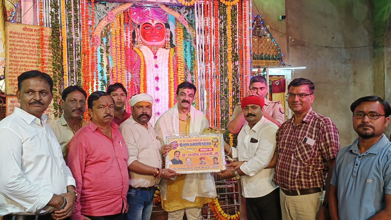 झांसी। श्री कृष्ण जन्माष्टमी के पावन पर्व पर अंदर बड़ागांव गेट स्थित श्री श्री 1008 श्री हनुमान मंदिर पर 31 वां कन्या भोज एवं भव्य विशाल भंडारे का आयोजन हुआ। सर्वप्रथम हनुमान मंदिर पर कार्यक्रम के मुख्य आयोजक रॉकी महाराज पूर्व सांसद प्रतिनिधि/मीडिया प्रभारी, बॉबी महाराज, पुजारी पंo कालीचरण जारोलिया एवं मोनू द्वारा भंडारे में सम्मिलित मुख्य अतिथि पूर्व सांसद माo चंद्रपाल यादव एवं विशिष्ट अतिथि झांसी के प्रतिष्ठित समाजसेवी संघर्ष सेवा समिति अध्यक्ष डॉo संदीप सरावगी का पगड़ी पहनाकर, शॉल उड़ाकर माल्यार्पण कर स्वागत किया गया। श्रीकृष्ण जन्माष्टमी के पावन पर्व हनुमान मंदिर पर हजारों श्रद्धालुओं ने भंडारे का प्रसाद ग्रहण किया। भंडारे के दौरान संगीतमय गीतों से गूंज उठा मंदिर प्रांगण। इस अवसर पर डॉक्टर संदीप सरावगी ने श्री कृष्ण जन्माष्टमी की बधाई देते हुए कहा कि गीता का संदेश है कि मनुष्य को त्याग की भावना के साथ इस संसार को भोगना चाहिए। लोभ की प्रवृत्ति पतन कराती है। करुणा व सत्यपथ को अपनाओ। पवित्रता से रहो। अपने आहार-विहार को शुद्ध, पवित्र और परिमित रखो। किसी भी प्राणी के प्रति वैरभाव नहीं रखना चाहिए क्योंकि संसार में जड़-चेतन जितने भी प्राणी हैं सबमें परमात्मा का निवास है। मोक्ष सभी कुछ कर्म पर ही निर्भर है। इसलिए मनुष्य को प्रत्येक कर्म अत्यन्त सावधानी के साथ सोच-समझकर करना चाहिए। क्योंकि मनुष्य का निर्माण भाग्य नहीं, उसकी कर्मशक्ति करती है। इस अवसर पर संघर्ष सेवा समिति से बसंत गुप्ता, राजू सेन, राकेश अहिरवार, सुशांत गोंडा, संदीप नामदेव, महेंद्र रायकवार, अनुज प्रताप सिंह, धर्म करोसिया, प्रमेंद्र सिंह सरकार सहित अन्य लोग उपस्थित रहे।