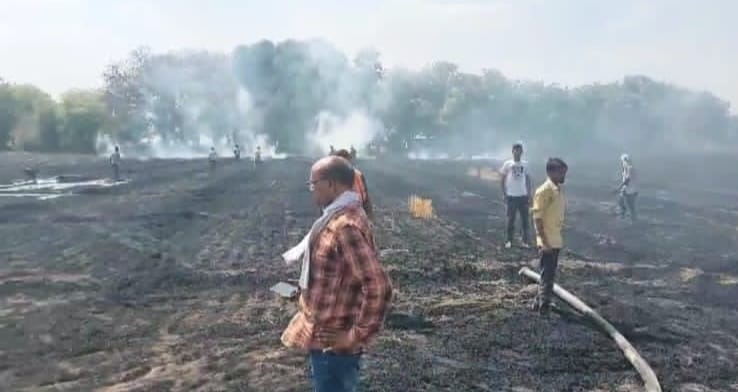 मिली जानकारी के मुताबिक गांव के अमरेंद्र सिंह व शिवप्रसाद निरंजन बब्बू मास्टर के खेत गांव के किनारे पर ही स्थित हैं। बुधवार की शाम खेतों के नजदीक ही कूड़े के ढेर में कोई महिला चूल्हे की राख डाल गई। थोड़ी ही देर बाद राख के ढेर में दबी चिंगारी यकायक भड़क गई और देखते ही देखते आग में तब्दील हो गई। उक्त आग दोनों के खेतों तक जा पहुंची। आग की ऊंची लपटें और धुआं देख ग्रामीणों में अफरातफरी मच गई और मौके पर काफी भीड़ जमा हो गई। सूचना मिलते ही फायर कर्मियों ने पहुंचकर बमुश्किल आग बुझाई। गनीमत रही की आग गांव की तरफ नहीं बढ़ी वरना बड़ी घटना घटित हो सकती थी। आग की चपेट में आने से शिवप्रसाद के खेत में रखे 50 स्प्रिंकलर पाइप और 20 बीघा के गेहूं के डंठल जबकि अमरेंद्र के 12 बीघा खेत के डंठल जलकर खाक हो गए। बताया जा रहा है कि उक्त स्थान पर काफी समय से चूल्हे की राख डाली जा रही है।