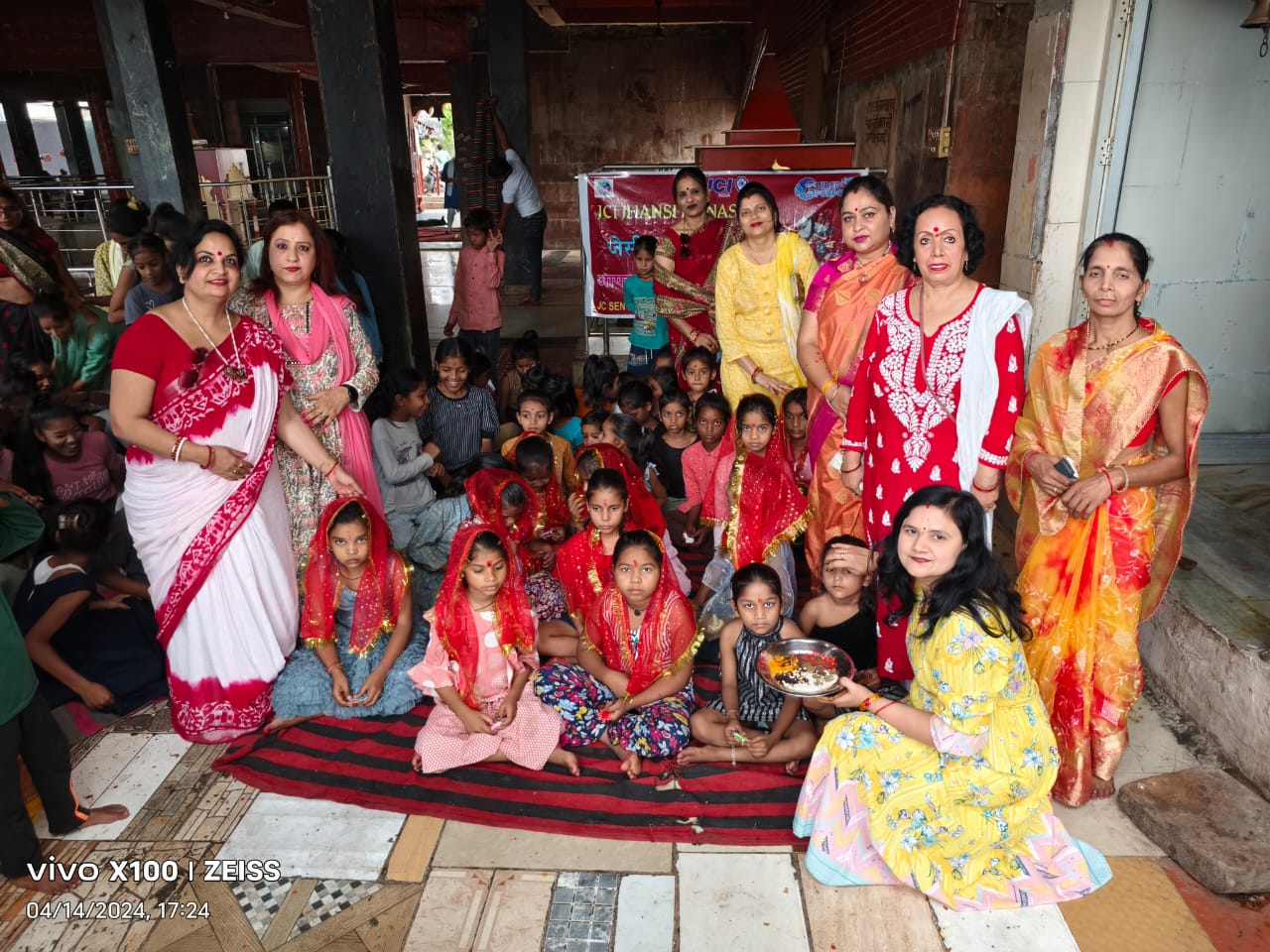 रजनी गुप्ता ने सभी को टीका लगाकर भोजन के लिए आमंत्रित किया।कार्यक्रम संयोजिका रागिनी राजपूत ने कन्याओं के लिए भोजन की व्यवस्था करवाई। राखी बुधराजा ने सभी कन्याओं को चुनरी ओढ़ाई। निधि नगरिया द्वारा पर्स, रश्मि द्वारा क्लिप्स, संयोगिता द्वारा बिस्किट, चिप्स इत्यादि बांटे गए।