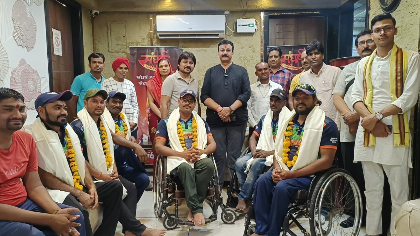 इसके पश्चात कई अंतर्राष्ट्रीय क्रिकेट मैचों में अपनी प्रतिभा का लोहा मनवाने वाले व एम. एवेंजर्स के कैप्टन दिव्यांग क्रिकेटर शैलेंद्र यादव ने कहा कि पहली बार संघर्ष सेवा समिति कार्यालय पर समिति के संस्थापक डॉ. संदीप सरावगी द्वारा हम दिव्यांग क्रिकेटरों का सम्मानित करना हमारे लिए गौरांवित करने वाला क्षण हैं वर्तमान समय में हम खेल उपकरणों की कमी से जूझ रहे थे, लेकिन भगवान स्वरूप डॉ. संदीप सरावगी द्वारा हम दिव्यांग क्रिकेटरों को स्पोर्ट्स व्हीलचेयर की घोषणा करना हमारे जीवन में नई किरण की तरह है। हम सभी दिव्यांग क्रिकेटर हृदय से डॉ. संदीप सरावगी का धन्यवाद देते हैं, अंत में एम.पी अवेंजर्स टीम के मैनेजर अरविंद जोशी ने कहा कि डॉक्टर संदीप सरावगी हमारे बड़े भाई की तरह है डॉ. संदीप सरावगी द्वारा 12 स्पोर्ट्स व्हीलचेयर की घोषणा करना हमारे लिए 12 ज्योतिर्लिंग के समान हैं, इस मौके पर इंडियन व्हीलचेयर क्रिकेट प्रीमियर लीग खेल कर आए खिलाड़ियों में संघर्ष सेवा समिति से दीपक शर्मा (गुना), विशाल सिंह चौहान (नागदा), अनिल कुमार (ललितपुर), ईश्वरी प्रसाद एवं संघर्ष सेवा समिति से सुशांत गुप्ता, बसंत गुप्ता, राजू सेन, उत्तम सिंह(सरपंच), गौरव अग्रवाल (चौधरी पेंट), सचिन अहिरवार (नगर,) लखन गौतम, एड. विवेक रिछारिया, सलमान खान, अब्दुल जब्बार सारिव, जितेंद्र करोसिया, नीलू रायकवार, संगीता सहित अन्य लोग मौजूद रहे।