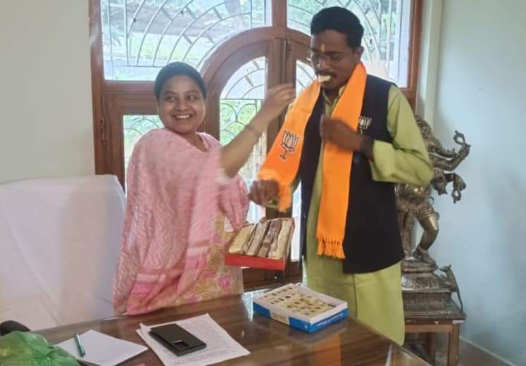 सांसद महोदया ने श्री श्याम का मुंह मीठा कराकर विजय श्री का आशीर्वाद दिया।