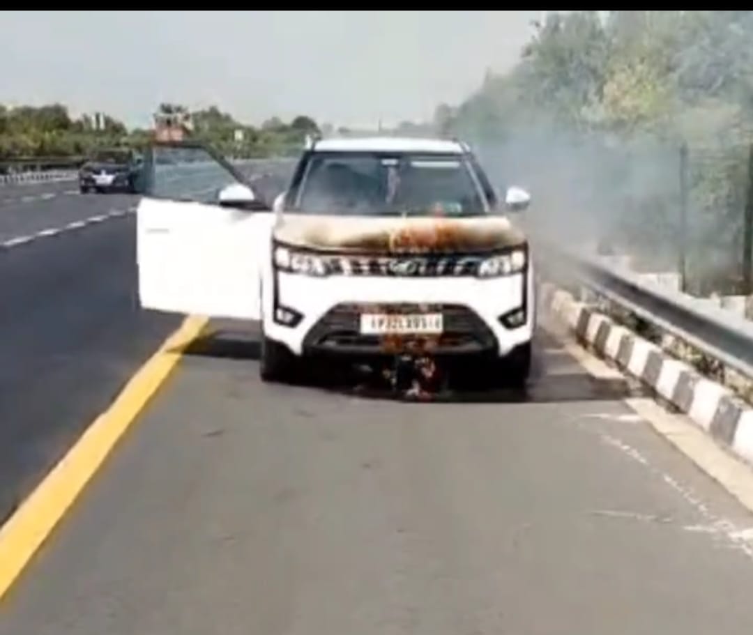 भीषण गर्मी के चलते कार का इंजन हीट होने के चलते इंजन में लगी आग