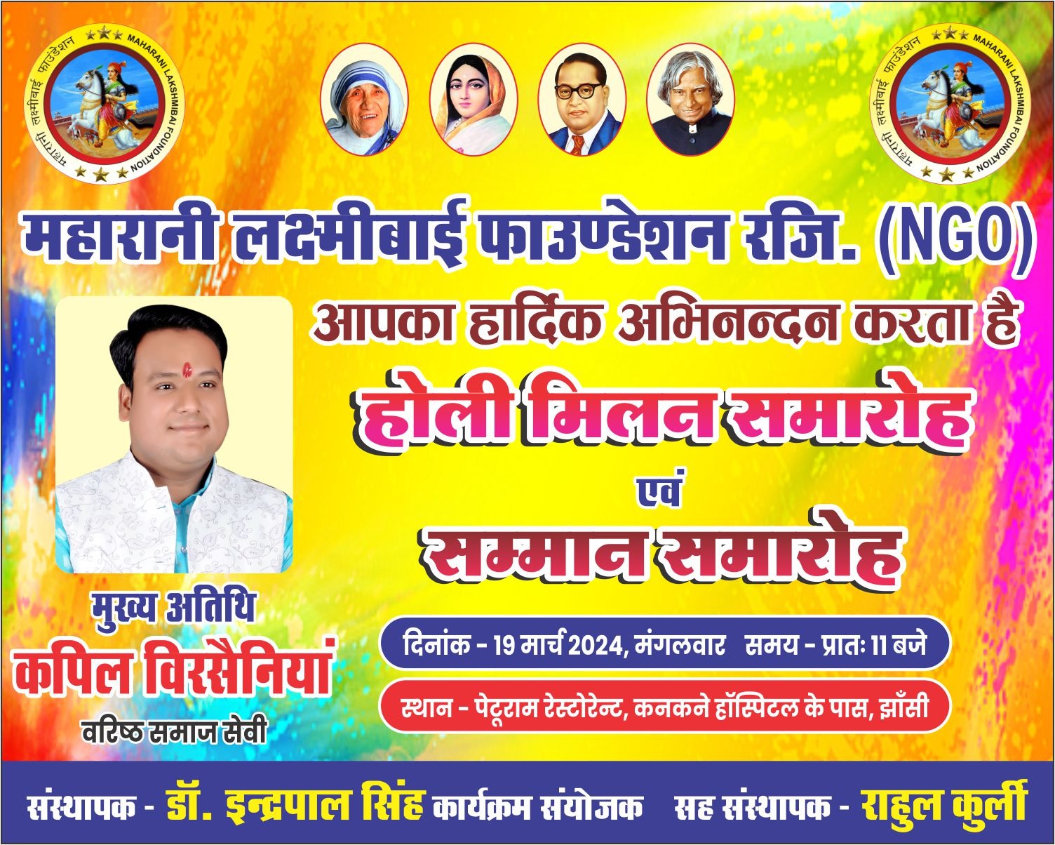 महारानी लक्ष्मीबाई फाउंडेशन के तत्वाधान में होली मिलन एवं सम्मान समारोह का आयोजन किया