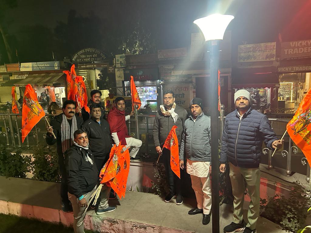 अयोध्या में राम मंदिर में होने वाली भगवान रामलला की भव्य प्राण प्रतिष्ठा के पावन अवसर पर महानगर अध्यक्ष हेमंत परिहार द्वारा पूर्व संध्या पर राम उत्सव का आयोजन रविवार 21 जनवरी 2024 को शाम 5:00 बजे मुक्ता काशी मंच पर उत्तर प्रदेश सरकार की कैबिनेट मंत्री बेबी रानी मौर्या क्षेत्रीय अध्यक्ष भाजपा कानपुर बुंदेलखंड क्षेत्र प्रकाश पाल जी के मुख्य आतिथ्य में संपन्न होगा कार्यक्रम की तैयारी भव्य रूप से सभी कार्यकर्ता एवं राम भक्त जोर शोर से लगे हुए हैं आज महानगर अध्यक्ष हेमंत परिहार ब उनके साथ अनेक भाजपा कार्यकर्ता रामभक्त शहर के चौराहों पर रोड़ों पर भगवा ध्वज एवं राम ध्वज लगा रहे हैं ।
