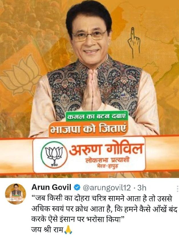 “मेरठ से बीजेपी उम्मीदवार अरुण गोविल ने अपने इस विवादित पोस्ट को X से अब डिलीट कर दिया है।