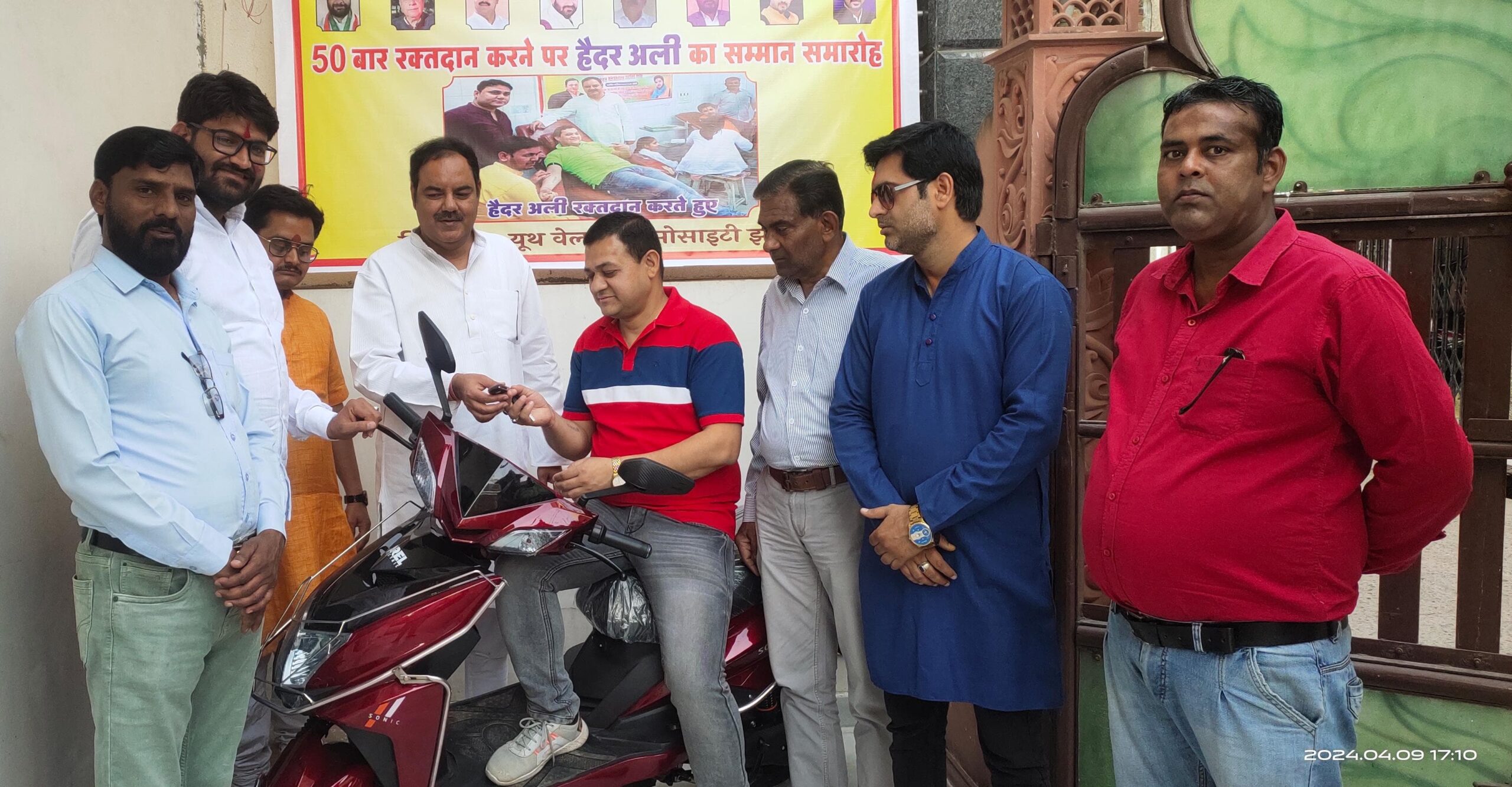 रक्तदान कर अर्धशतक पूरा करने पर हैदर अली को स्कूटी देकर किया सम्मानित रिपोर्ट:अनिल मौर्य 8318270566