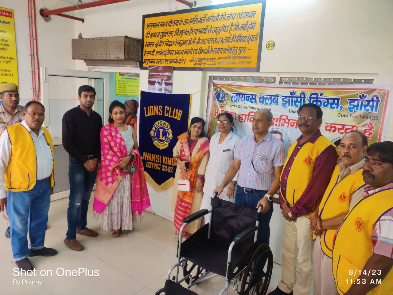 लायन्स क्लब झांसी किंग्स के तत्वावधान में लाइंस आनंद कुमार सक्सेना के सौजन्य से, सर्जिकल वार्ड जिला अस्पताल में व्हीलचेयर भेट की: रिपोर्ट:अनिल मौर्य