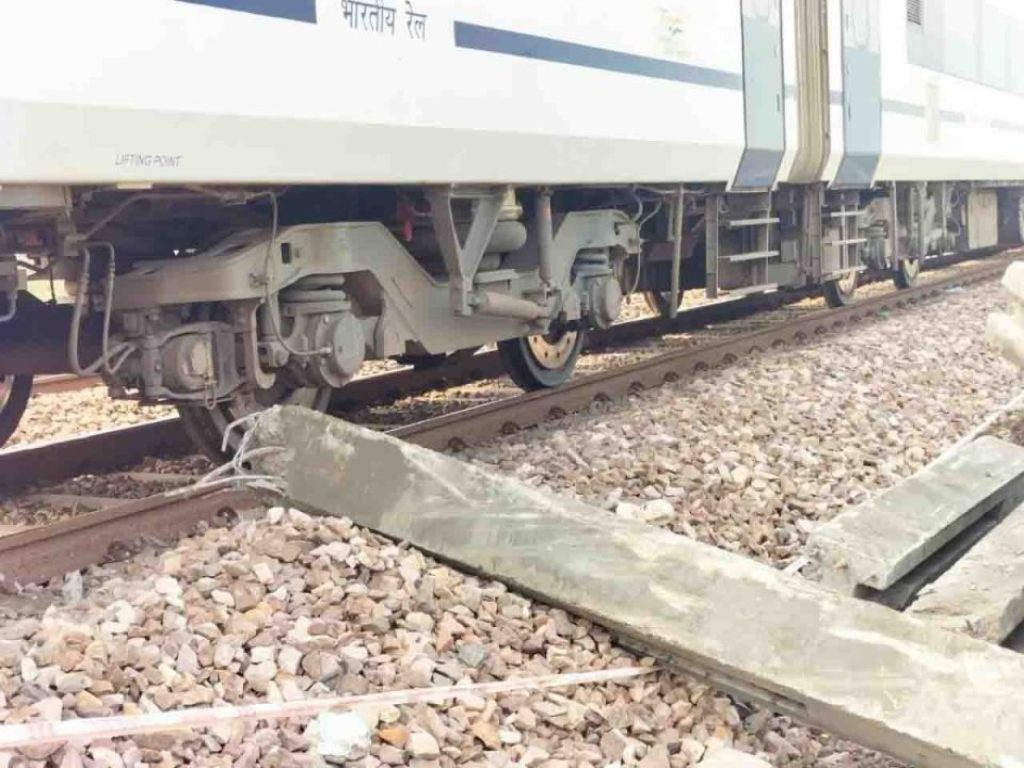 औरैया के अछल्दा में शुक्रवार को बड़ा हादसा होने से टल गया। यहां दिल्ली-हावड़ा रेलमार्ग की डाउन लाइन पर दिल्ली से वाराणसी जा रही वंदे भारत एक्सप्रेस स्लीपर से टकरा गई। जिससे तेज धमाका हुआ। चालक ने सूझबूझ का परिचय देते हुए इमरजेंसी ब्रेक लगाकर ट्रेन रोकी। जिससे वंदे भारत एक्सप्रेस पलटने से बच गई। तेज धमाके की आवाज सुनकर यात्री घबरा गए। शुक्रवार सुबह अछल्दा स्टेशन के पास डंपर से सीमेंट के स्लीपर लाये गए थे। जिन्हें रेलवे ट्रैक किनारे प्रेशर की मदद से उतारा जा रहा था, लेकिन एक स्लीपर रेलवे लाइन पर उतर गया। जिसे बाउंड्री वाल पर काम कर रहे मजदूरों ने हटाने का प्रयास किया।वन्दे भारत एक्सप्रेस के चालक ने स्टेशन मास्टर को घटना की सूचना दी। मौके पर पहुंचे आरपीएफ के जवानों ने लोगों के सहयोग से ट्रेन के पास से स्लीपर को हटवाया।