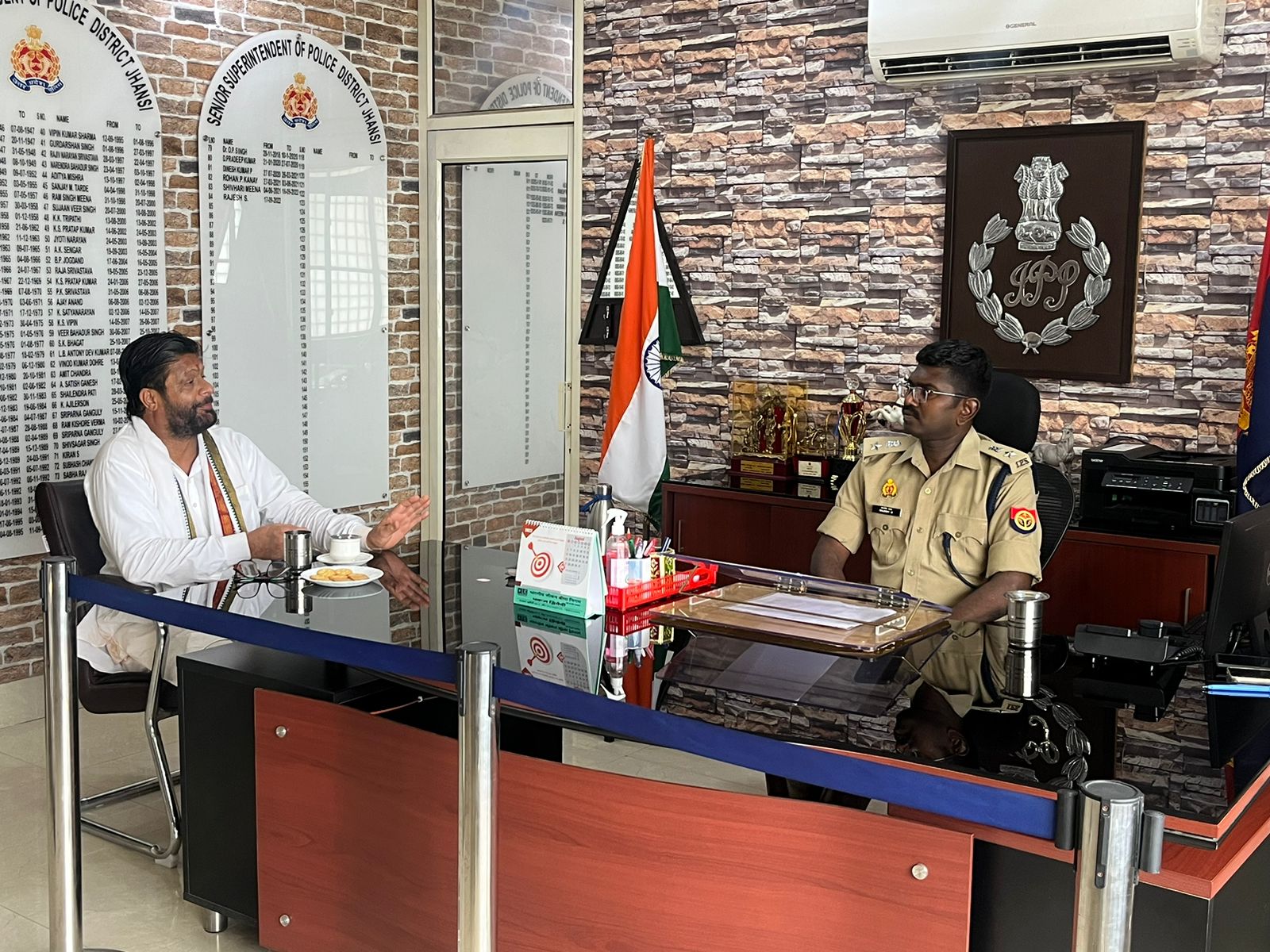 झांसी: इन दिनों महानगर में दो व चार पहिया वाहनों के चैकिंग के नाम पर हो रहें उत्पीड़न व तेज स्पीड को लेकर एक वाहन चालक के पास कई चालान ऑनलाइन पहुँचने से परेशान लोगों की समस्या के समाधान के लिये मंगलवार को पूर्व केंद्रीय मंत्री प्रदीप जैन आदित्य वरिष्ठ पुलिस अधीक्षक राजेश एस से मिले।