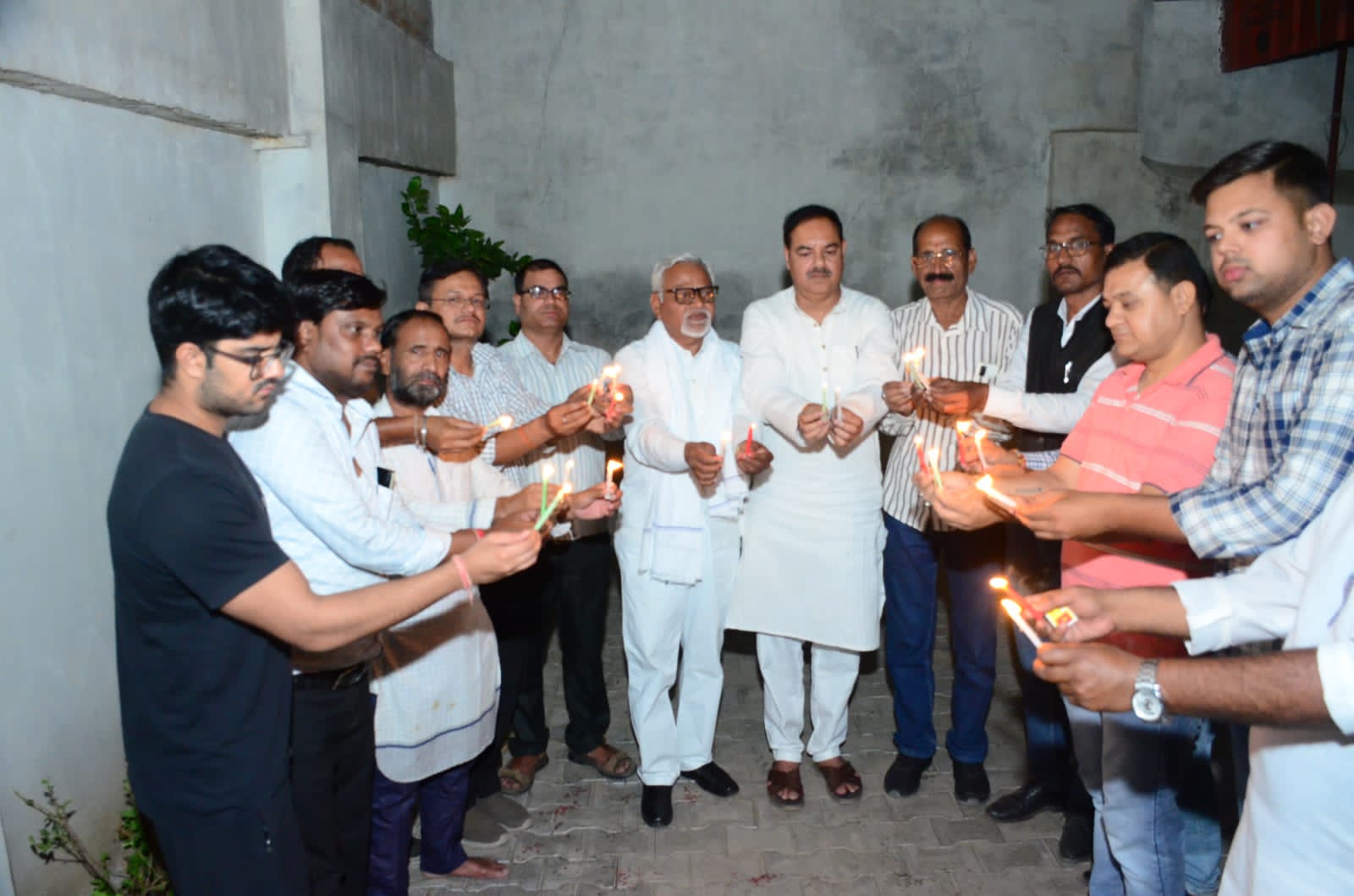 समाजवादी पार्टी के वरिष्ठ नेता पंडित अरविंद वशिष्ठ के नेतृत्व में पहलगाम में आतंकी हमले में शहीद हुए सैलानियों को कैंडल जलाकर श्रद्धांजलि अर्पित की