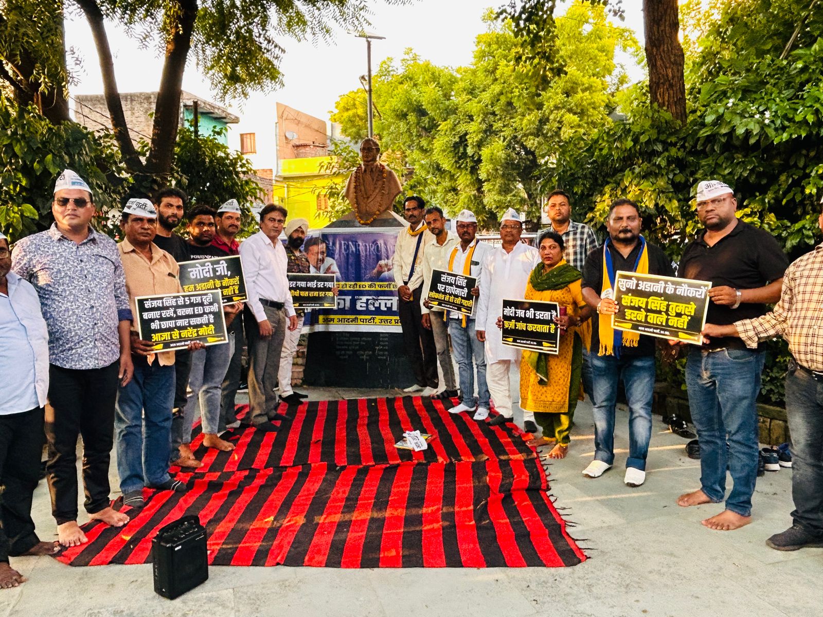 झांसी! आम आदनी पार्टी के प्रदेश प्रभारी राज्य सभा सांसद संजय सिंह के नई दिल्ली स्थित नॉर्थ एवेन्यू आवास पर आज सुबह ई0 डी0 की छापेमारी तथा उसके बाद हुई गिरफ्तारी के विरोध में आज संपूर्ण प्रदेश में पार्टी द्वारा विरोध प्रदर्शन किया गया जिसके अंतर्गत पार्टी की झांसी इकाई के कार्यकर्ताओं ने जिलाध्यक्ष अरशद खान के नेतृत्व में तथा महानगर अध्यक्ष ग्यादीन कुशवाहा के संयोजन में तालपुरा स्थित अंबेडकर पार्क में बाबा साहेब भीमराव अंबेडकर की प्रतिमा के समक्ष विरोध प्रदर्शन किया।