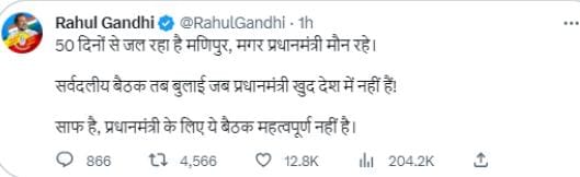 50 दिनों से जल रहा है मणिपुर,मगर PM मौन रहे- राहुल
