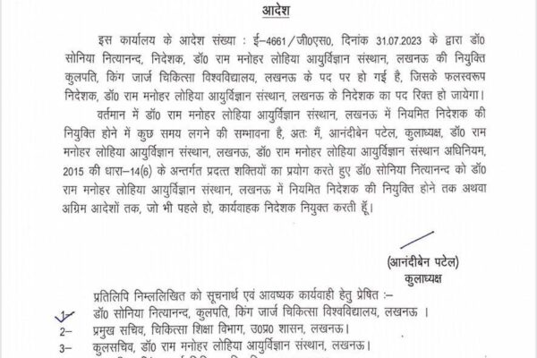 KGMU प्रमुख सोनिया नित्यानंद को लखनऊ के राम मनोहर लोहिया संस्थान का अतिरिक्त प्रभार