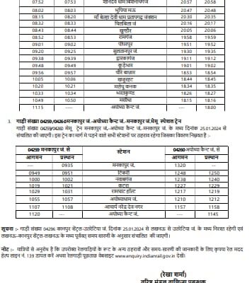 लखनऊ.श्रद्धालुओं के लिए चलाई जाएगी मेमू स्पेशल ट्रेन। राम मन्दिर में दर्शन करने वालों के लिए स्पेशल ट्रेन.25 जनवरी से श्रद्धालुओं के लिए चलेगी मेमू स्पेशल ट्रेन.अयोध्या कैंट से लखनऊ के लिए मेमू ट्रेन का संचालन.अयोध्या कैंट के लिए स्पेशल मेमू ट्रेन का होगा संचालन.प्रयागराज संगम से अयोध्या कैंट के लिए ट्रेन का संचालन.मनकापुर जंक्शन…