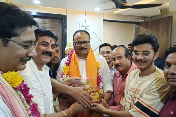 डॉ० संदीप सरावगी से औपचारिक भेंट करने संघर्ष सेवा समिति कार्यालय पहुँचे डिप्टी सीएम बृजेश पाठक