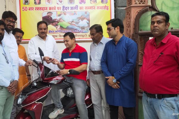 रक्तदान कर अर्धशतक पूरा करने पर हैदर अली को स्कूटी देकर किया सम्मानित रिपोर्ट:अनिल मौर्य 8318270566